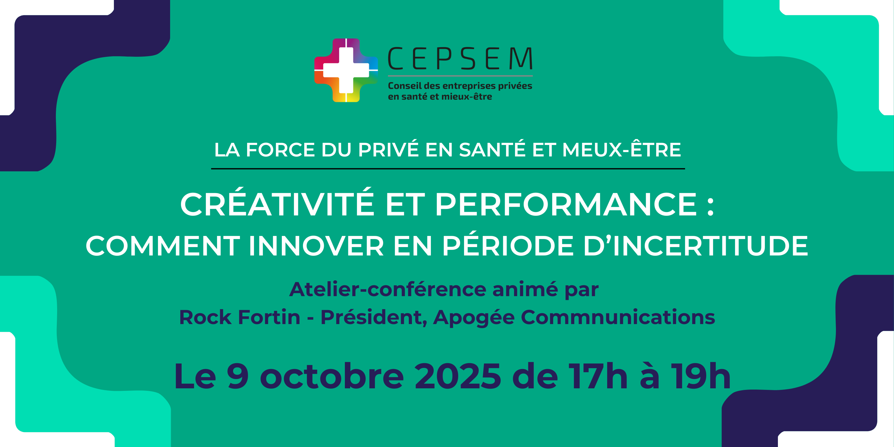 En explorant différents niveaux de créativité et en s’appuyant sur des pratiques inspirantes, cette atelier-conférence outillera notre réseau pour identifier des solutions et approches innovantes qui seront présentées aux dirigeants et représentants de Santé Québec qui se joindront à nous lors d’un atelier subséquent du CEPSEM cet automne.