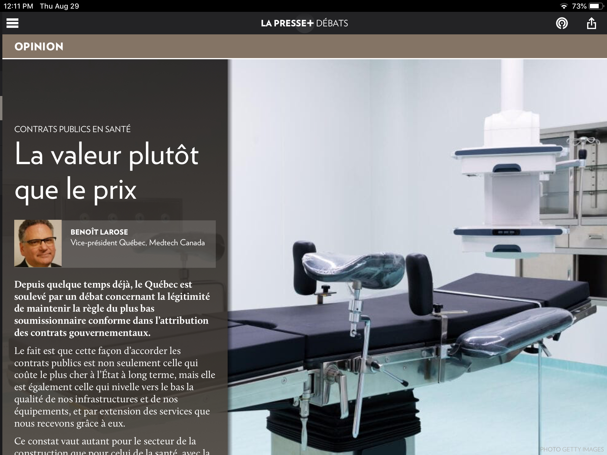Lisez la lettre d’opinion rédigée par M. Benoit Larose, Vice-président Québec de MEDTECH Canada, collaborateur du CEPSEM, concernant l’importance pour Québec d’octroyer des contrats selon la valeur des services offerts plutôt que sur le seul critère du plus bas prix.