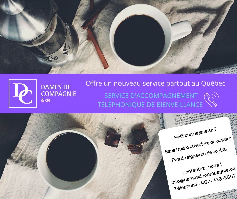 C’est justement le cas d’un de nos membres, Dames de compagnie et compagnie, qui offre un service d’accompagnement aux personnes âgées en résidences. Étant donné l’accès restreint de ces établissements, Marie-Chantal Jarry, présidente de Dames de compagnie, a modifié son offre de service.