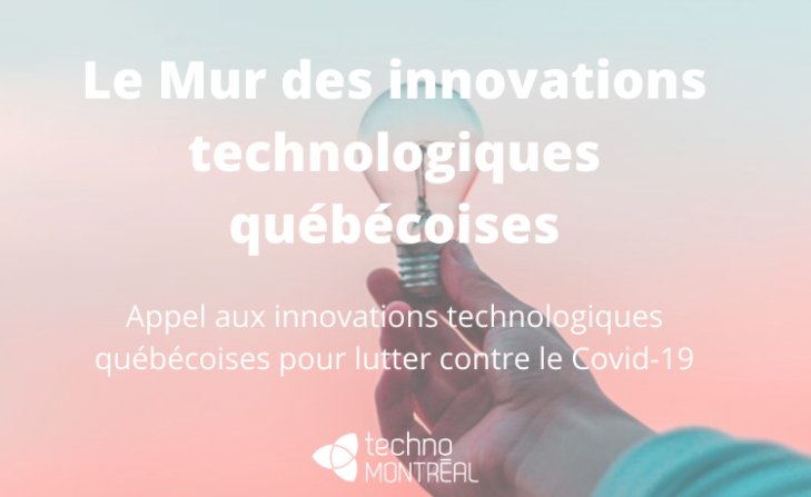 Pour votre information, TechnoMontréal a démarré la semaine dernière une initiative intitulé « Mur des innovations technologiques Québécoises » en lien avec le COVID-19 et la stratégie d’achats locaux. Celui-ci touche tout ce qui est technologique incluant le secteur de la santé et de la transformation numérique des organisations (télétravail, virage infonuagique, etc.). L’objectif à court terme du mur est de devenir un market place entre les donneurs d’ordre (clients de divers secteurs) afin qu’ils puissent avoir accès à des fournisseurs technologiques du Québec.