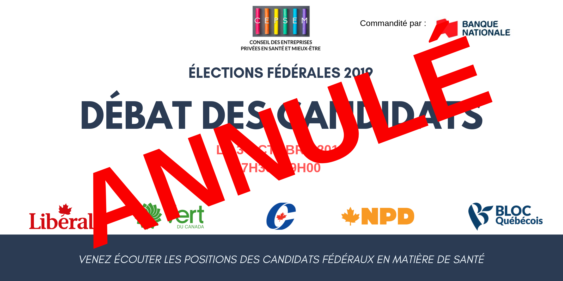 Le 3 octobre prochain, le CEPSEM devait accueillir des représentants de chacun des principaux partis politiques fédéraux à l’occasion d’un débat.