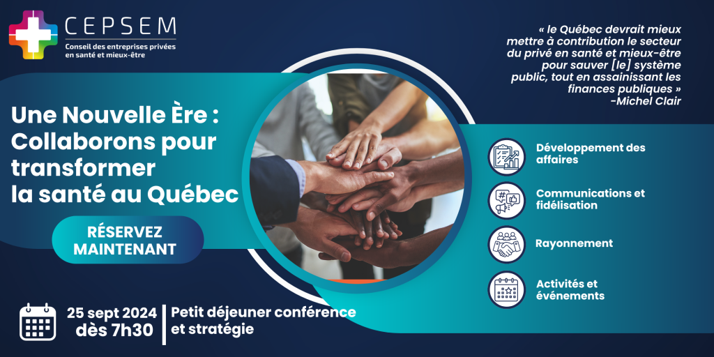Pour vous permettre d’échanger avec des penseurs, des chercheurs, des gestionnaires de haut niveau en matière de santé et du rôle du privé et du mieux-être, ici et ailleurs, le CEPSEM organise plusieurs activités au cours de l’année.