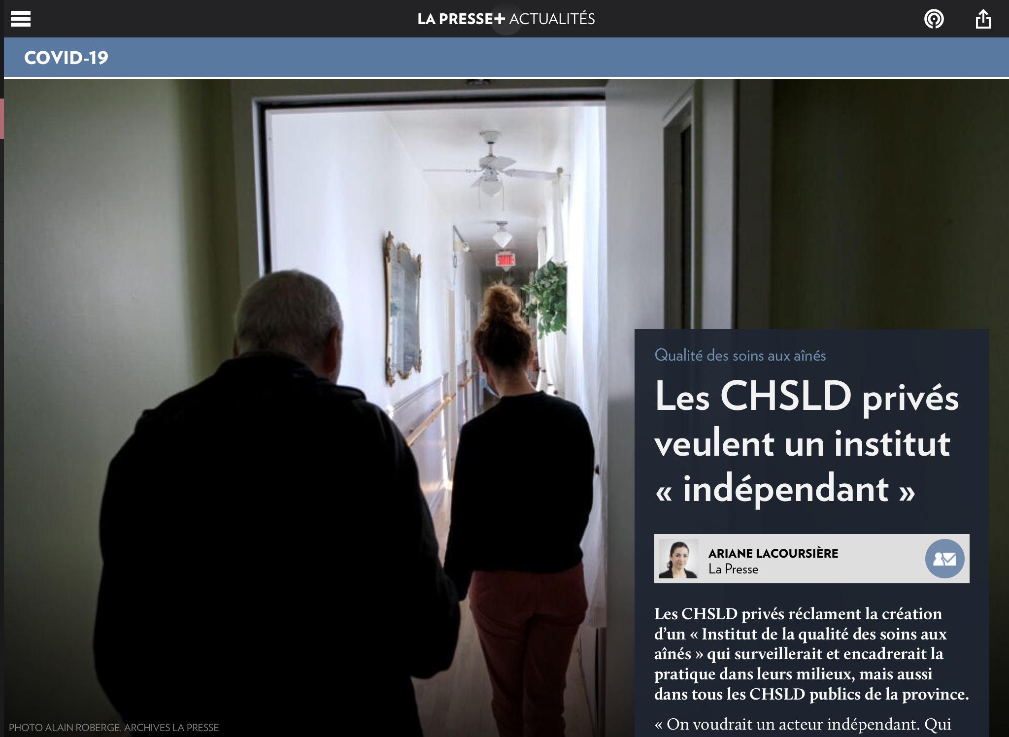 La rédaction de cette lettre a été, bien sûr, précipitée par les dossiers médiatisés des deux derniers jours concernant Herron et Vigi Santé. Il y avait une opportunité à saisir à l’effet que, tous milieux d’hébergement confondus, nous souhaitions être partie de la solution et que celle-ci devait impérativement passer par une réforme en profondeur et non la stricte nationalisation ou le conventionnement. C’est d’ailleurs la principale idée derrière le fait de nous réunir dans ce discours commun. Nous souhaitions aussi faire la part des choses quant aux histoires d’horreur qui circulent et qui nous mettent collectivement à mal ou en opposition au réseau public.